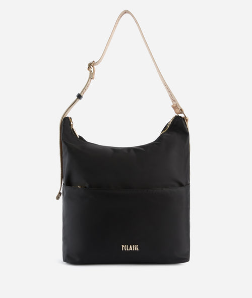 Borsa a mano realizzata in tessuto stampato con cartina geografica Geo Classic e dettagli in pelle di vacchetta color viola. L'articolo e' fornito anche di tracolla lunga regolabile e removibile.